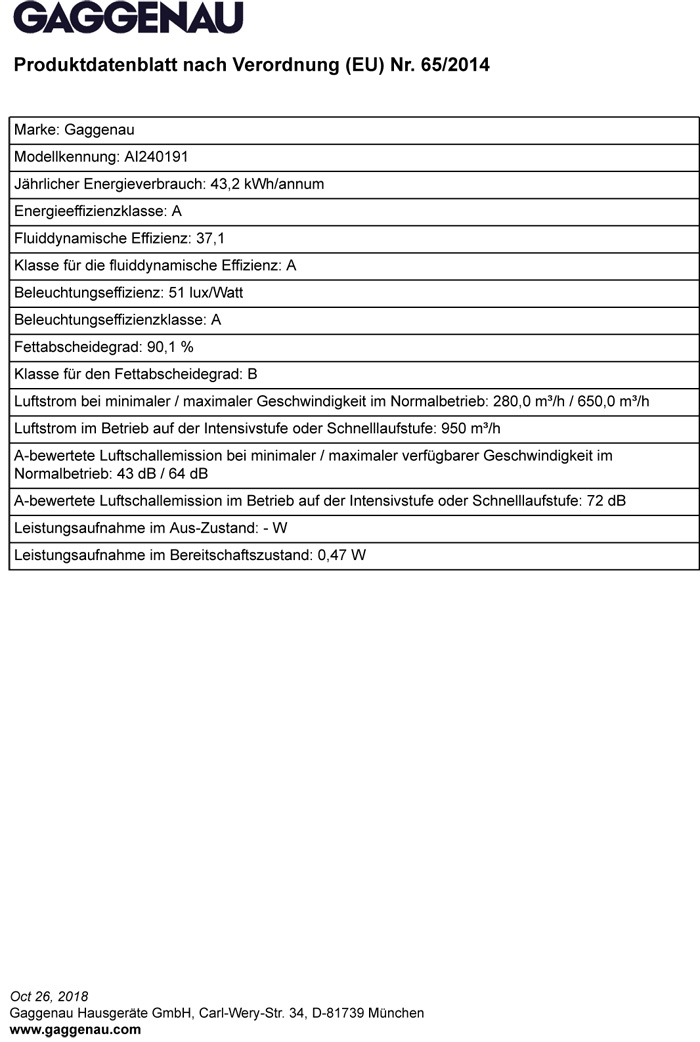 - Energieeffizienzklasse A auf einer Skala der Effizienzklassen von A++ bis E