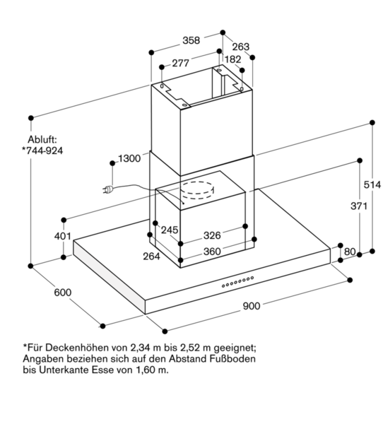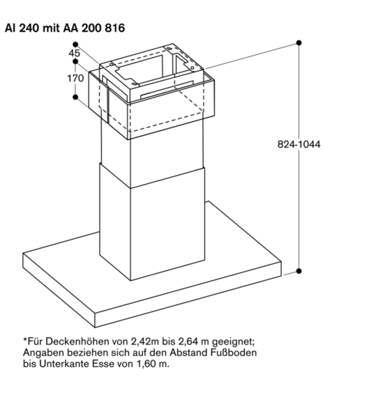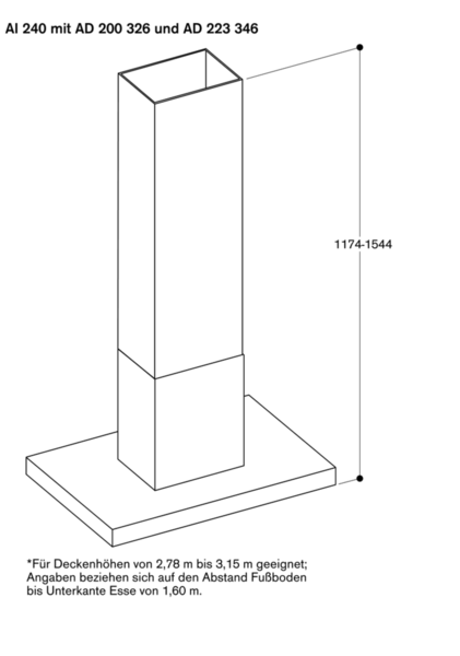 - Individuelle Planungslösungen können mit dem Sonderzubehör Kaminverlängerung AD 200 326 in Kombination mit der Montageturmverlängerung AD 223 346 realisiert werden