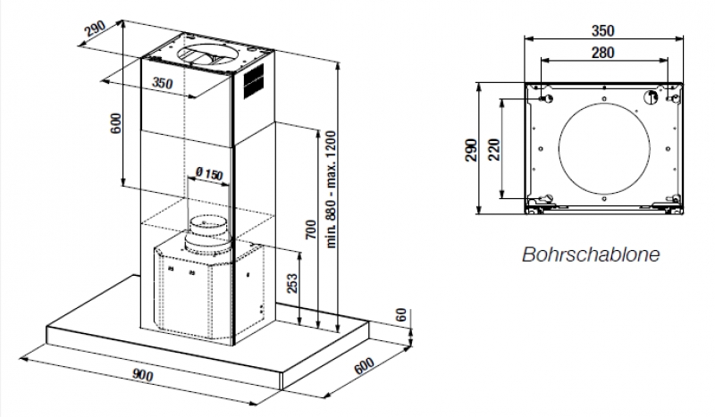 • Abluftanschluss: Ø 150 mm