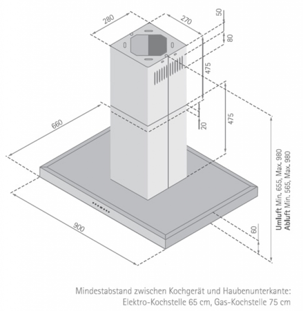 - Min./Max. Normalbetrieb 50/70 dB(A)