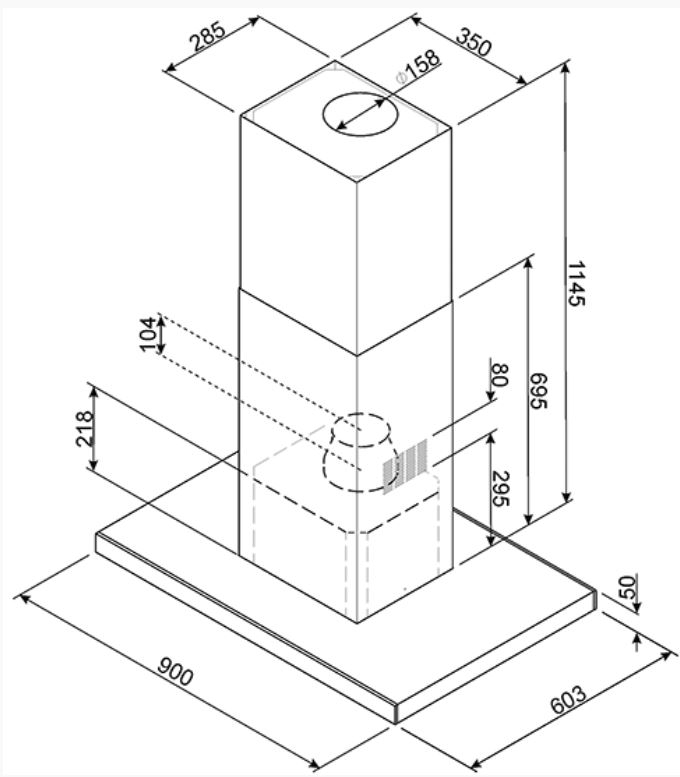 • Abluftanschluss Ø 150 mm mit Luftrückschlagklappe