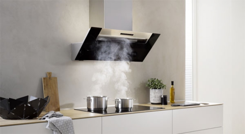 Bei schräg angeordneten Glasdekorhauben kann es durch das Zusammentreffen von heißem Wasserdampf auf die kalte Dekorfläche zu einer unschönen Kondensat- bis hin zur Tropfenbildung kommen. Die zum Patent angemeldete Back-Flow Technologie weiß dies durch eine von unten nach oben angeordnete Belüftung der Dekorscheibe zu verhindern. Dabei wird an der Rückseite der Haube ein Teil der Luftmenge zurückgeführt und über die Glasfront geführt. Durch diese Sekundärbelüftung bleibt die Dekorfläche stets frei von Kondensaten und die Dunstwrasen werden noch gezielter in den Ansaugspalt gelenkt. Für eine besonders hohe Wrasenerfassungs-Effizienz und eine ausgesprochen effektive Luftreinigung.