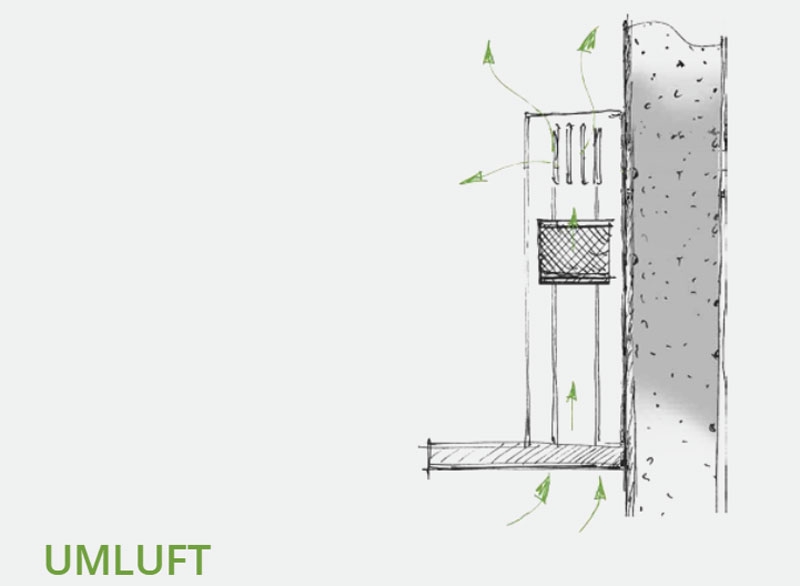 Bei der berbel Umluft-Technik wird die Luft nach dem berbel Prinzip optimal aufbereitet, fettfrei und nahezu geruchsneutral wieder zurück in den Raum geführt. Da keine Abwege nach draußen vorhanden sind, bleibt die Raumwärme zu 100% erhalten. berbel Umluft-Technik ist ideal geeignet für Häuser nach neuestem Energie-Standard (EnEV), Mietshäuser, Altbauten, für komplizierte Abluftwege oder zur Sicherheit bei Kaminen mit offener Feuerstelle.