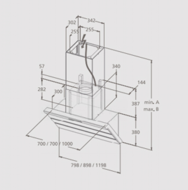 - Kochfeldabstand Elektro/Gas: 55 cm