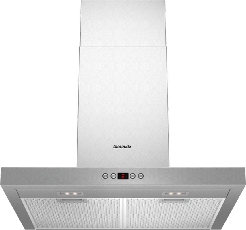 Lüfterleistung 5-stufig (3 Leistungsstufen + 2 Intensivstufen) regelbar durch Kurzhubtasten mit 7-Segment-Anzeige