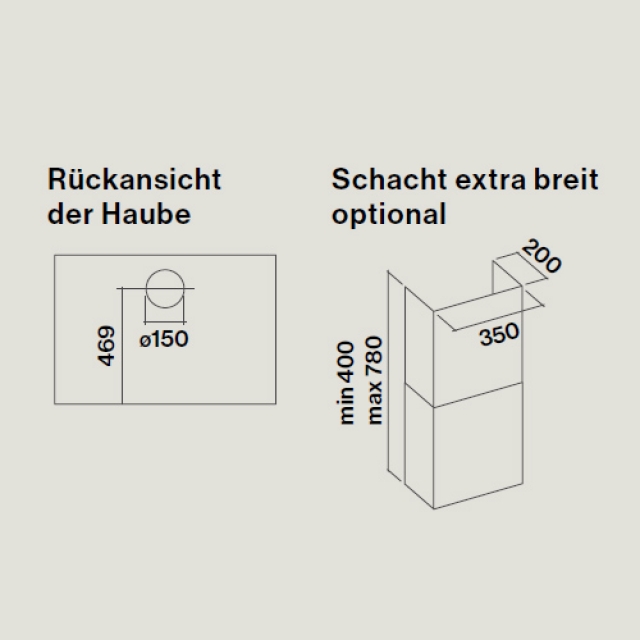 (Abbildung der Wandhaube: Sicherheitsglas in Schwarz)