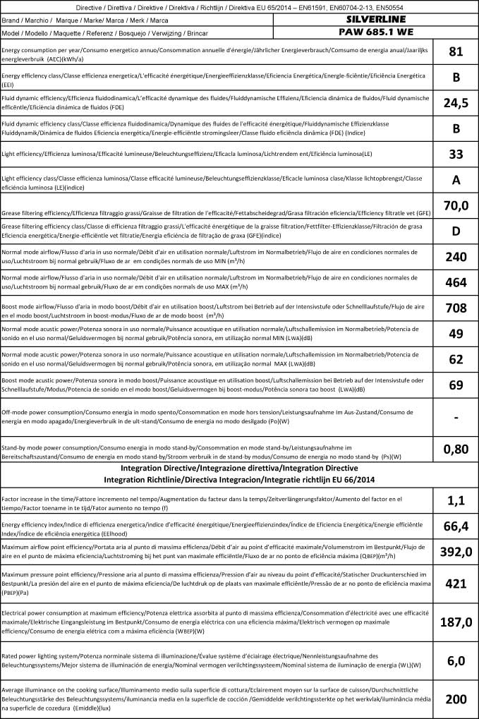•   Min./Max. Normalbetrieb 49/62 dB(A), Boost 69 dB(A)