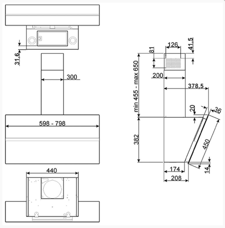 • Abluftanschluss Ø 150 mm mit Luftrückschlagklappe