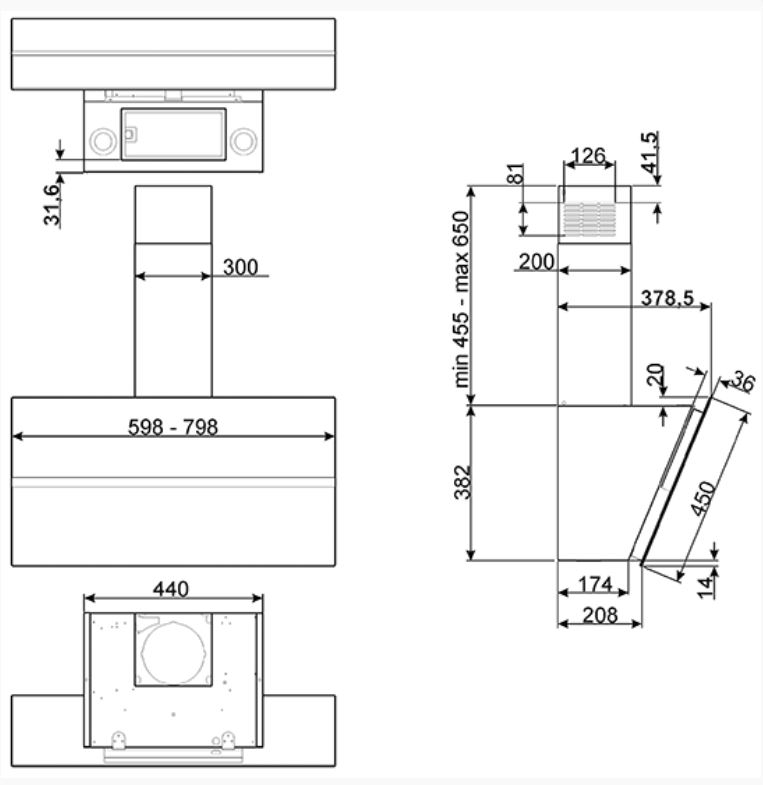 • Abluftanschluss Ø 150 mm mit Luftrückschlagklappe
