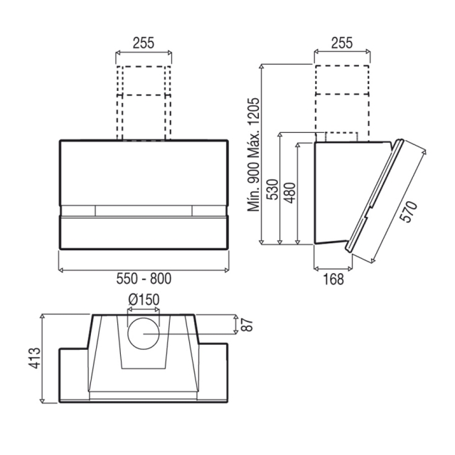 • Abluftausgang: Ø 150 mm