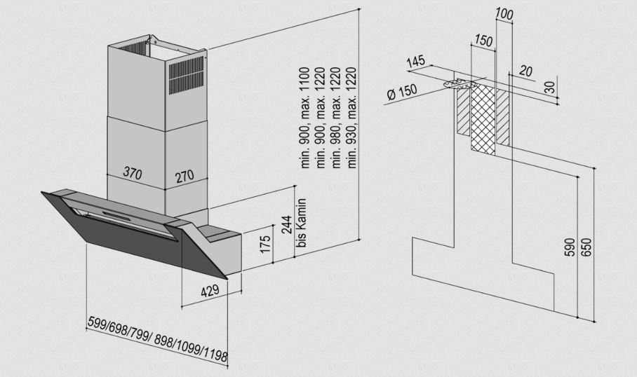 • Kaminverlängerung auf bis zu 1.840 mm möglich