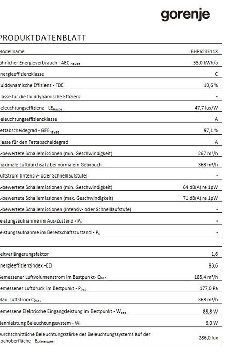 Gorenje BHP 623 E11X, Flachschirmhaube, Edelstahl, 60 cm, EEK: C, mit 5 Jahren Garantie!products_warranty_conditions