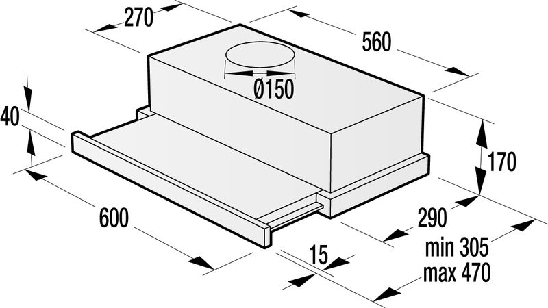 • Stutzen für Abluftbetrieb oben, Ø 150 mm