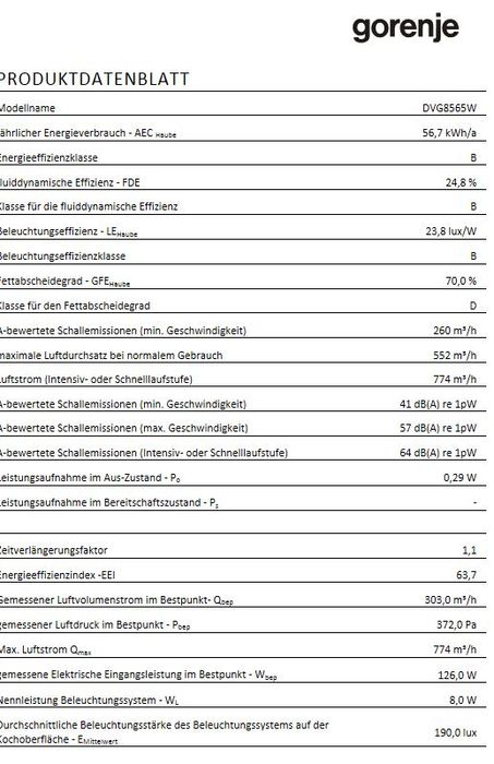 Gorenje DVG 8565 W, Kopffrei-Haube, Glas weiß/Edelstahl, 80 cm, EEK: C, mit 5 Jahren Garantie!products_warranty_conditions
