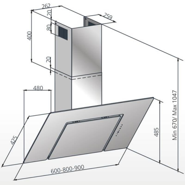 Silverline Andromeda Eco 80 cm ANW 853.3 S Schwarzglas. Mit 5 Jahren Garantie!