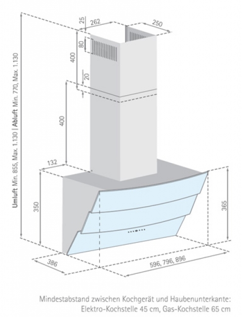 • Gerätemaße: H x B x T: 875 – 1130 x 596 x 386 mm (Details siehe Abblidung 2)