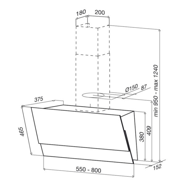 - Abluftausgang: Ø 150 mm