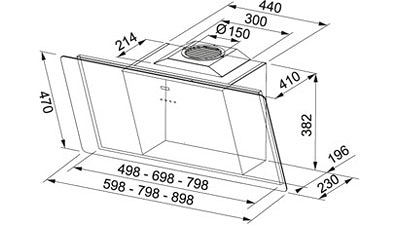 • Durchmesser Abluftstutzen in mm: 150 (inkl. 120 mm-Adapter)