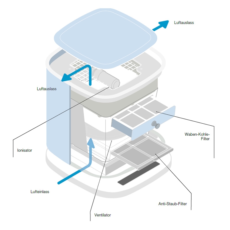 Dank des aktiven Ionisationssystems reinigt Bellaria sehr wirksam die Raumluft.