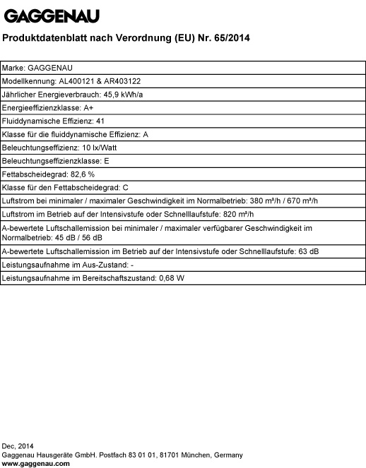 Gaggenau 120 cm Tischlüftung (ohne Motor) AL 400 121