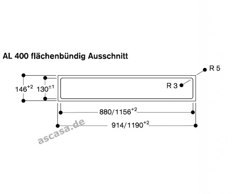 Der verbleibende Steg in der Arbeitsplatte (mind. 50 mm) zwischen den Ausschnitten muss mit einem Unterzug verstärkt werden. Hierfür