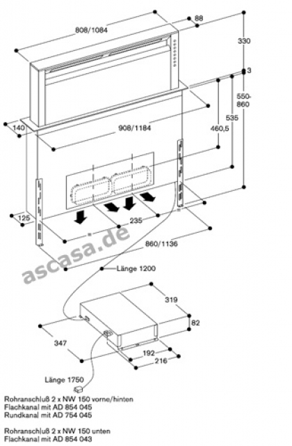 Ein passender Gebläsebaustein für den Umluft- oder Abluftbetrieb muß seperat bestellt werden.