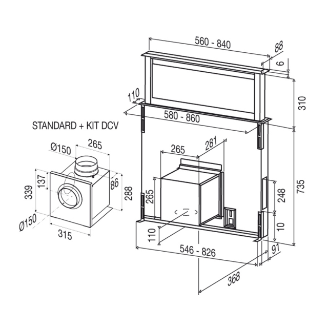 - Abluftausgang: Ø 150 mm