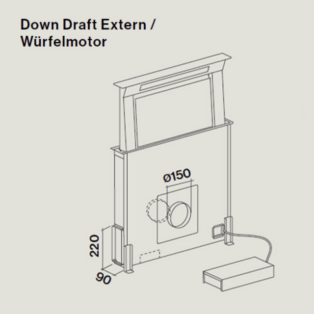 - Umluftbetrieb ausschließlich mit Downdraft Motor Flach (101057) möglich