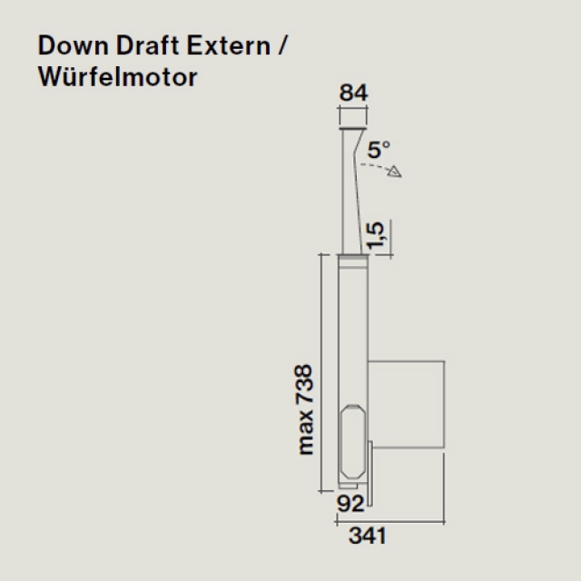 - Umluftbetrieb ausschließlich mit Downdraft Motor Flach (101057) möglich
