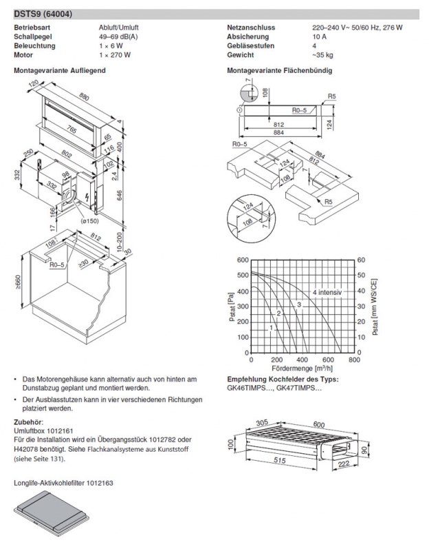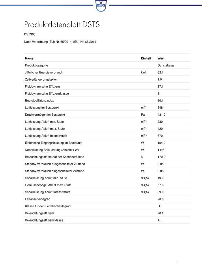 - Schallleistung Abluft Intensivstufe: 69.0 dB(A)