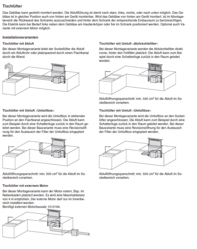 - Abluftbetrieb, Umluftbetrieb mit Zubehör