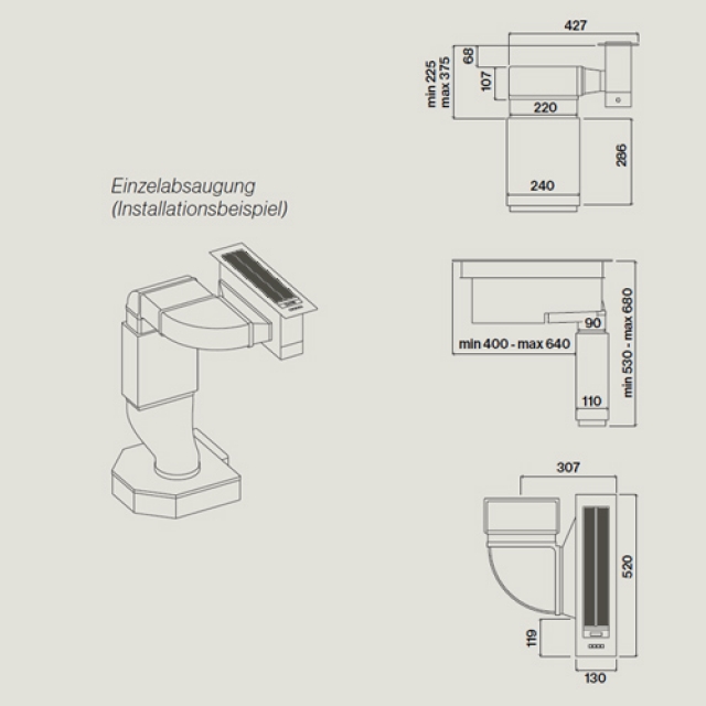 - Kann mit allen Falmec, sowie vielen markenfremden Kochfeldern betrieben werden