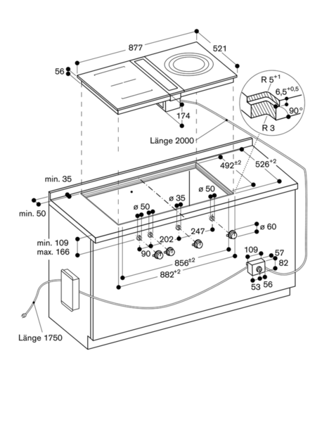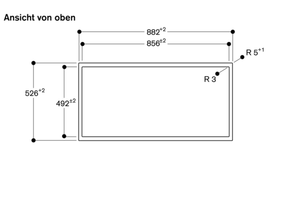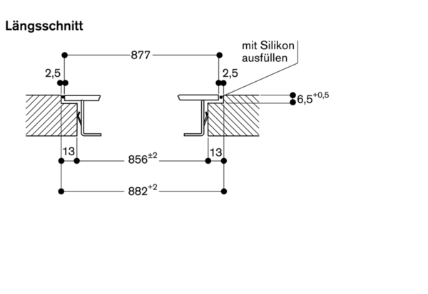 Durch Maßtoleranzen der Glaskeramikscheibe und des Arbeitsplattenausschnittes kann die Fugenbreite variieren.