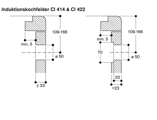 Der Einbau eignet sich in Arbeitsplatten aus Stein, synthetischem Material oder Massivholz. Hitzebeständigkeit und wasserdichte Versiegelung der Schnittkanten sind zu berücksichtigen. Bei anderen Materialien stimmen Sie sich bezüglich der Verwendung mit dem Arbeitsplatten-Hersteller ab.