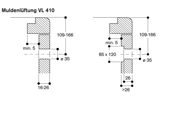 Die Tragfähigkeit und die Stabilität insbesondere bei dünnen Arbeitsplatten ist durch geeignete Unterkonstruktionen sicherzustellen. Gerätegewicht inkl. zusätzlicher Beladung berücksichtigen.