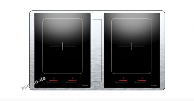 Gutmann Abajo 23 ML 925 A II Extern Muldenlüfter inklusive 2 Induktionskochfeldern 92,5 cm, Rahmen aus Edelstahl, Zentralabsaugung, Multifunktionsfilter, ohne Motor