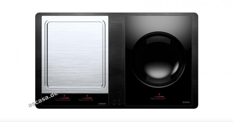 Gutmann Abajo 23 ML 925 B TW Intern Muldenlüfter mit Teppan Yaki- und Wok-Kochfeld 92,5 cm, Rahmen aus Edelstahl, Zentralabsaugung, Multifunktionsfilter, mit Motor