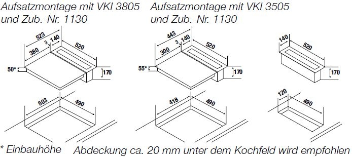 • Geeignet für den Betrieb mit den VarioLine Kochflächen VKI 3805.0 und VKI 3505.0