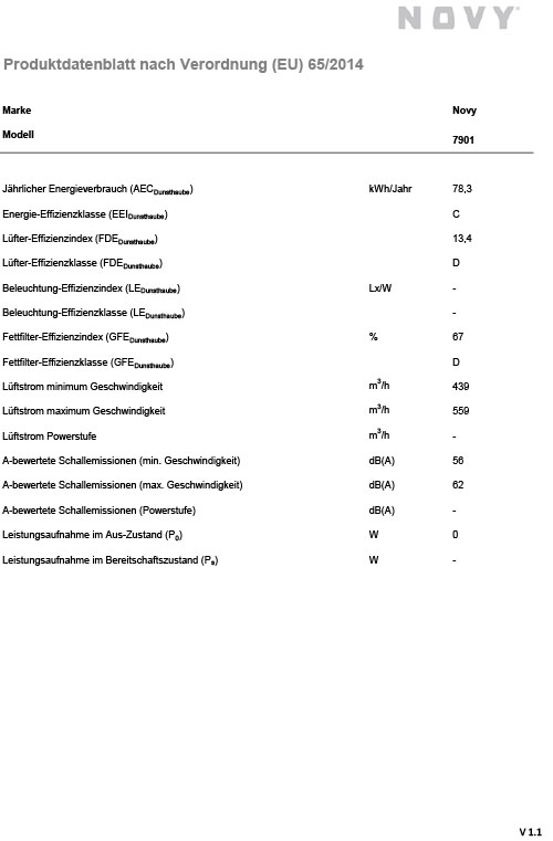 - Austausch gegen einen gleichwertigen oder neuen Artikel Novy Up_Side 7901 Kochfeldabsaugung, Edelstahl Wandhaube (ggf. auch ein Nachfolgemodell)
