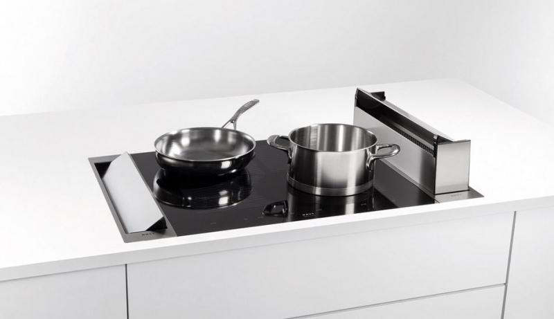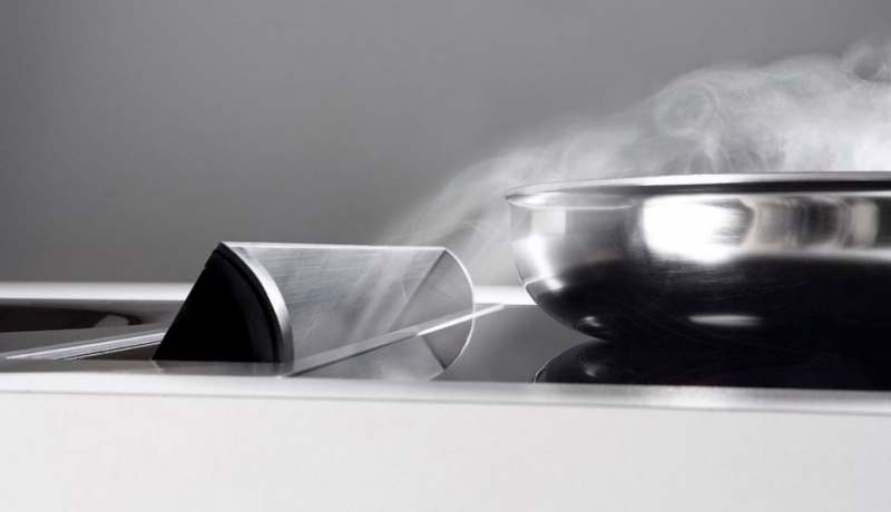 Planen Sie die Kochfeldabsaugung ausschließlich mit zwei 38 cm breiten Domino-Kochfeldern links und rechts von der Dunsthaube. Wir empfehlen den Einsatz unserer 38 cm breiten Induktionskochfelder, dem 38 cm breiten Induktions-Teppan Yaki bzw. Induktions-Wok.