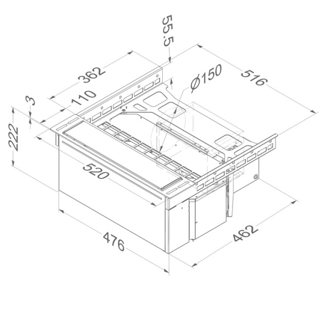 Kochfeldabsaugung, um 12 cm höhenverstellbar