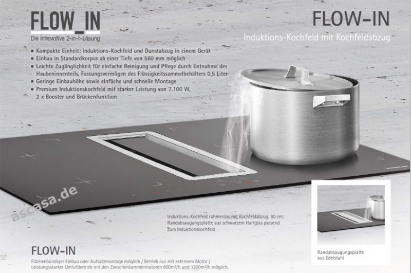 • Induktions-Kochfeld und Dunstabzug in einem Gerät