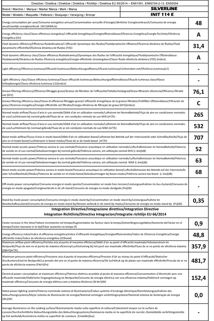 Die Integra-Intern-Premium INIT 114E ist eine Tisch-Haube mit einer Breite von 120 cm. Sie verfügt u.a. über 3 Normalstufen, Boost-Leistungsstufe und Nachlaufautomatik.