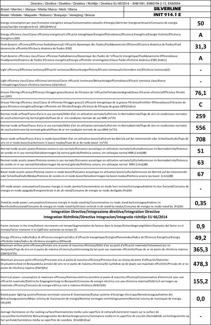 - Gemäß EU-Regulierung 65/2014 – EN61591, EN60704-2-13, EN50554