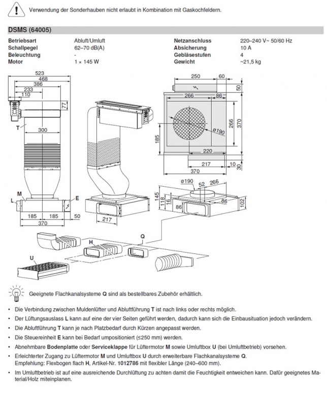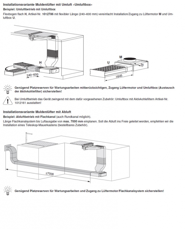 - Abluftbetrieb, Umluftbetrieb mit Zubehör