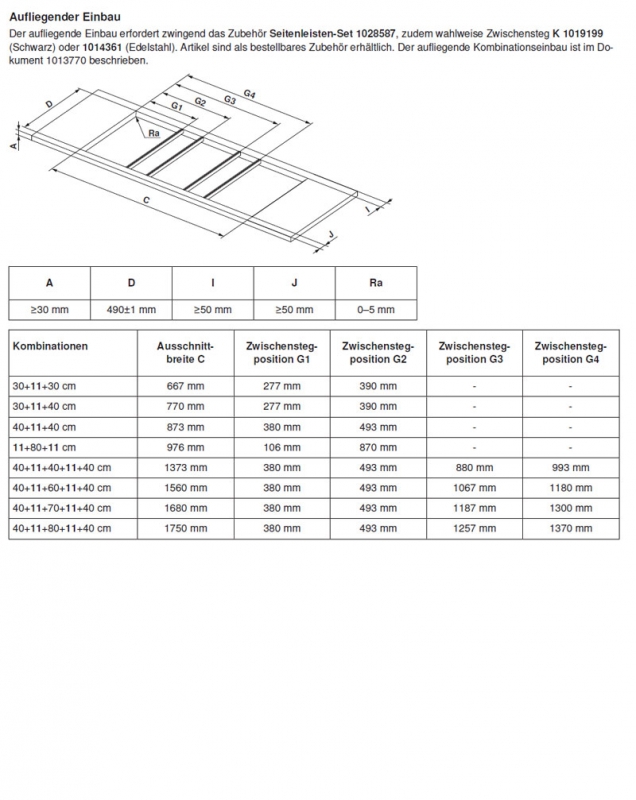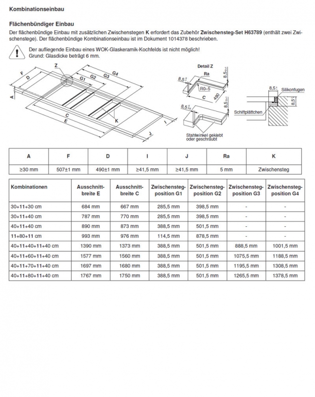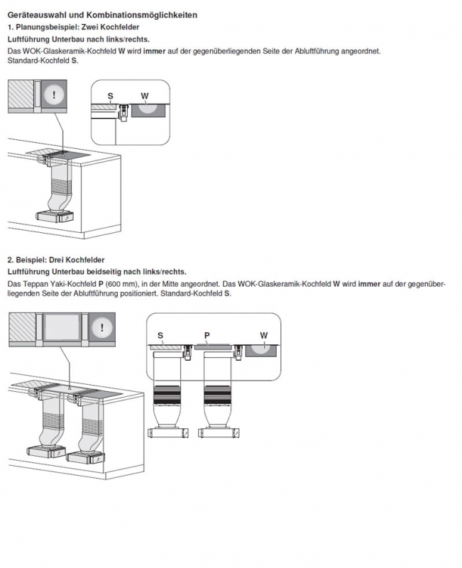 - Achtung: Bei der Kombination mit einem Gaskochfeld von V-ZUG muss unbedingt der Gasdeflektor 1031218 bestellt und montiert werden.