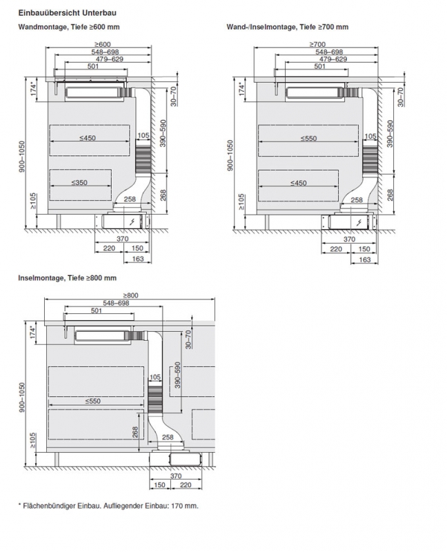 - Luftleistung Abluft min. Stufe: 370 m³/h