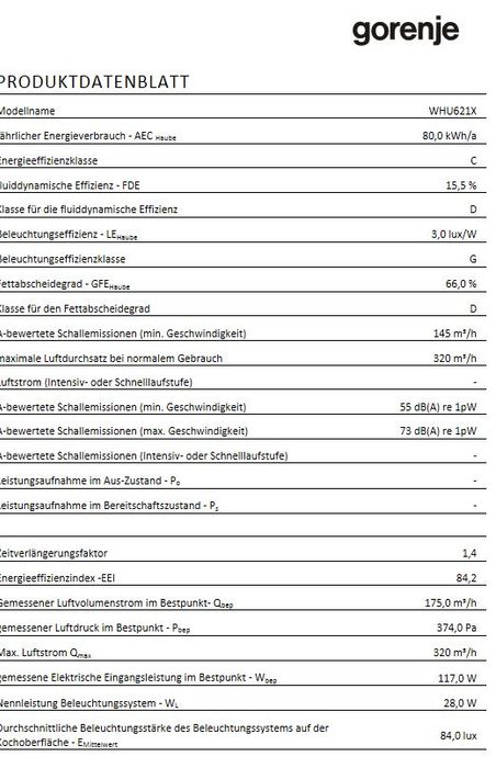 Gorenje WHU 621 X, Unterbauhaube, Edelstahl, 60 cm, EEK: C, mit 5 Jahren Garantie!products_warranty_conditions