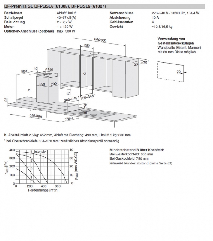 - Geräuschepegel Abluft max. Stufe: 53.0 dB(A)