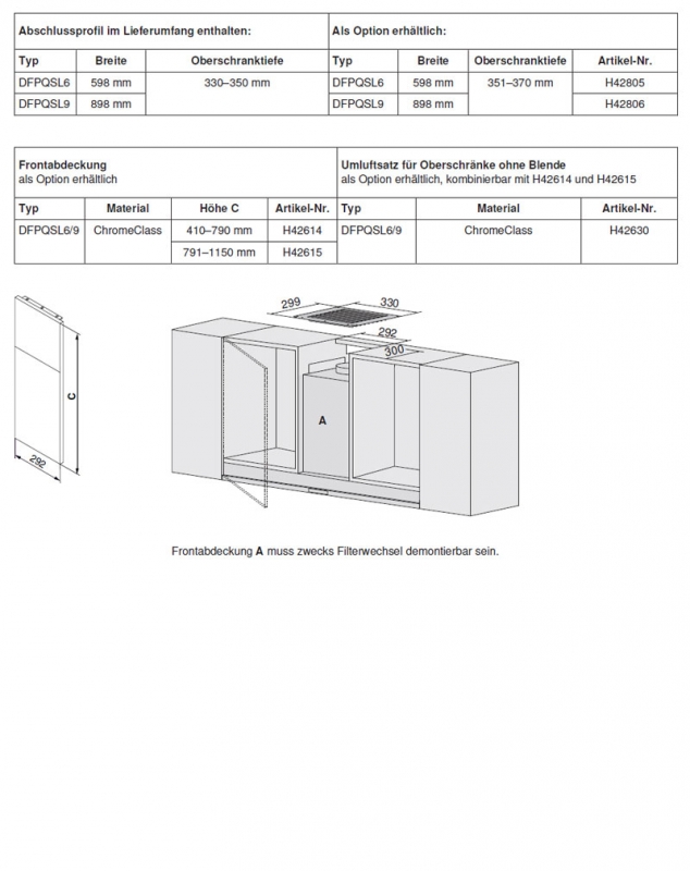 VZug DW Premira DFPQSL9G, Einbau-Haube, 6100760002